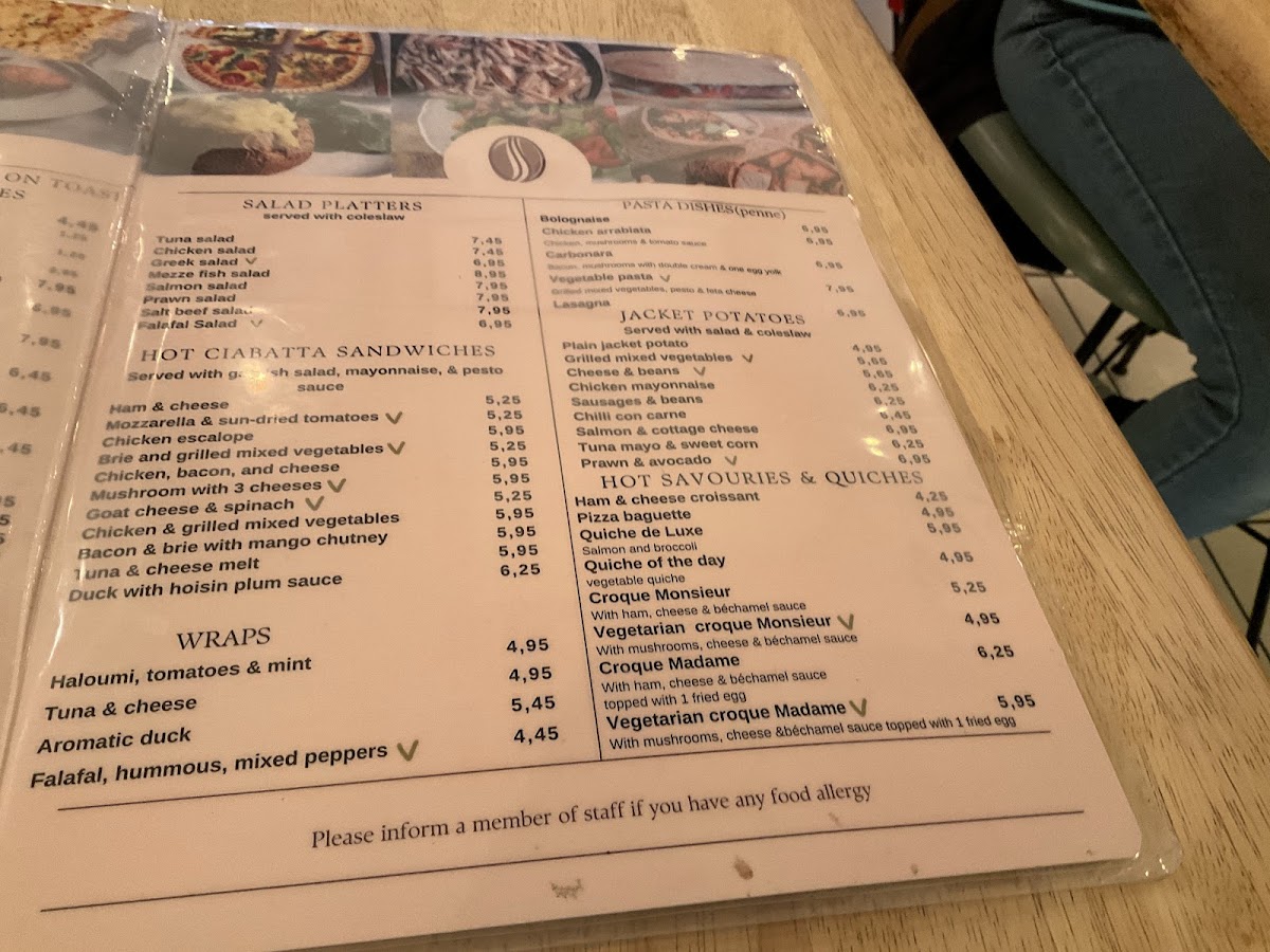 Upon entering, you are greeted with the comforting aroma of roasting coffee beans and the tantalizing scent of freshly baked pastries. The Hot Savouries & Quiches menu features standout items such as the Ham & Cheese Croissant (£4.25) and the decadent Quiche De Luxe (£5.95). Each dish is crafted with high-quality ingredients, reflecting the café's commitment to serving delicious, locally sourced food. Whether you're in the mood for a hearty Croque Monsieur (£5.25) or a light Vegetarian Croque Madame (£6.20), there’s something to satisfy every palate.