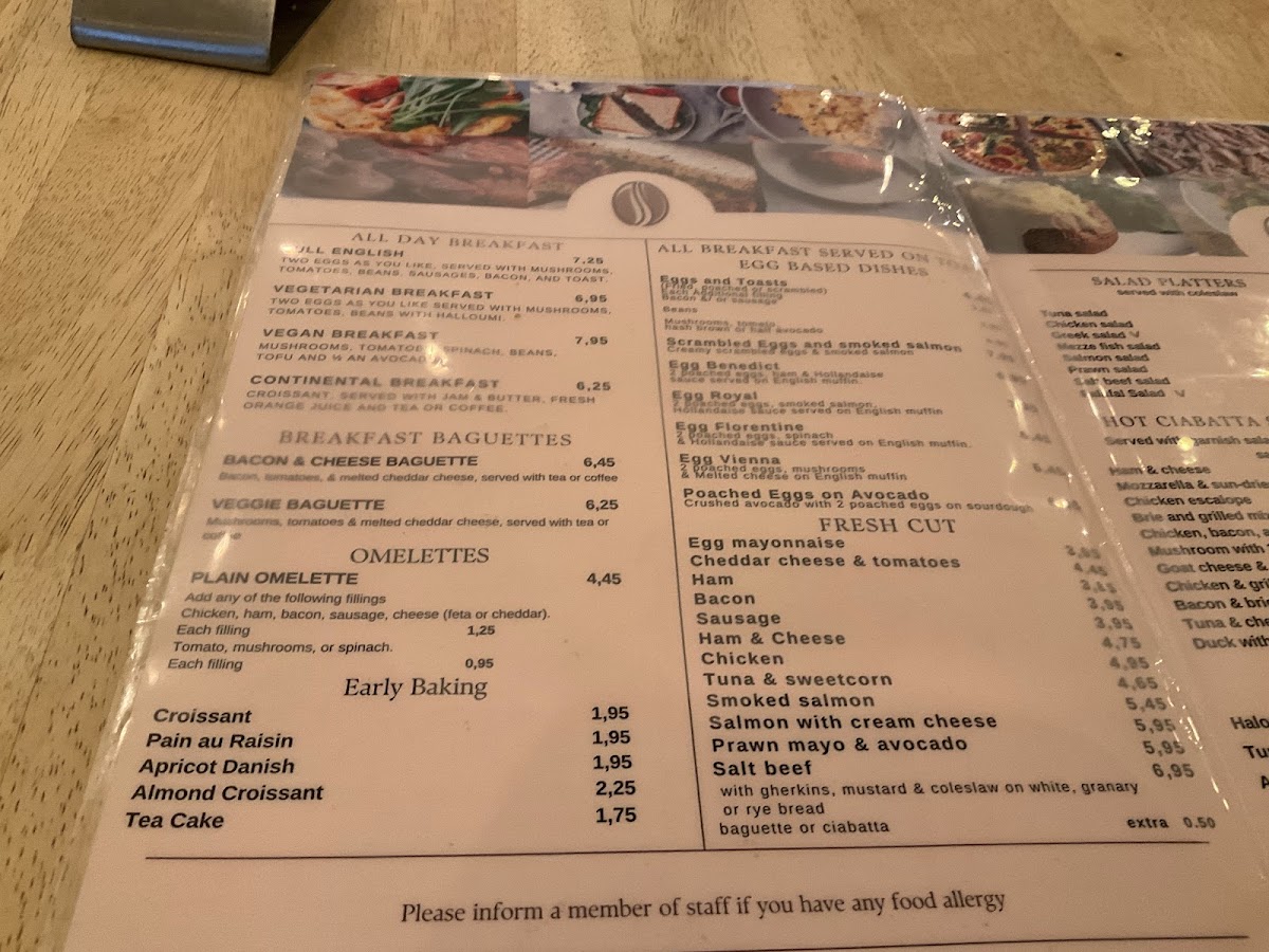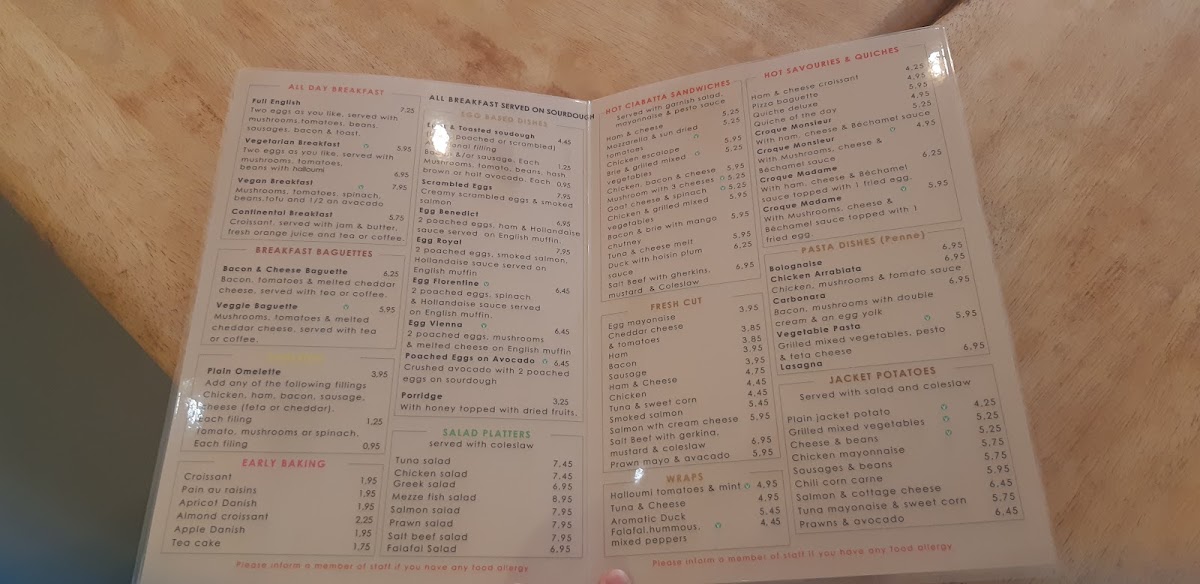 The breakfast selections are equally enticing, featuring a Full English breakfast at £8.25 and a delicious Vegan Breakfast for those seeking plant-based options. Each dish is prepared with care, contributing to the café's friendly and inviting atmosphere.